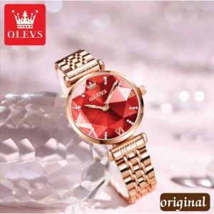 OLEVS 6642 Watch For Women Elegant Ladies Fashion Casual Quartz Women’s Butterfly Double Button Buckle Diamond Glass Watch Solid Stainless Steel Bracelet